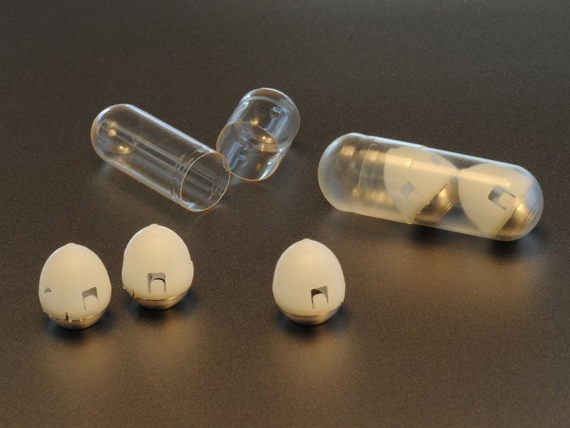 Форма капсулы воспроизводит очертания панциря живущей в Африке леопардовой черепахи (Geochelone pardalis). Высокая куполообразная верхняя половина ее панциря позволяет этой черепахе вставать на ноги, если она по каким-то причинам перевернулась на спину. В случае с таблеткой такая форма обеспечивает правильную ориентацию иглы в сторону стенки желудка.