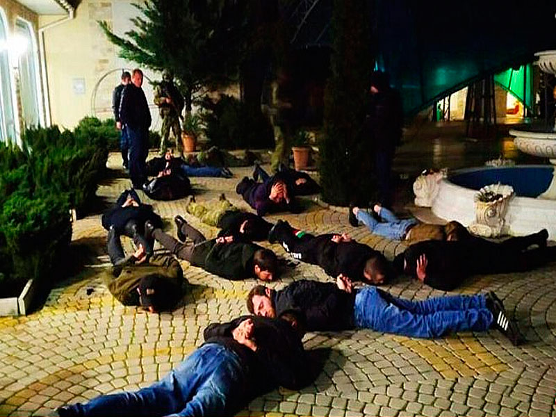 Крым, г. Саки. Задержанные у кафе "Встреча" / primechaniya.ru Крымская полиция задержала помощника представителя Чечни Мурада Саидова после драки в ресторане по подозрению в вымогательстве. В драке участвовали более десяти человек, у которых полиция изъяла несколько единиц оружия и патроны.
