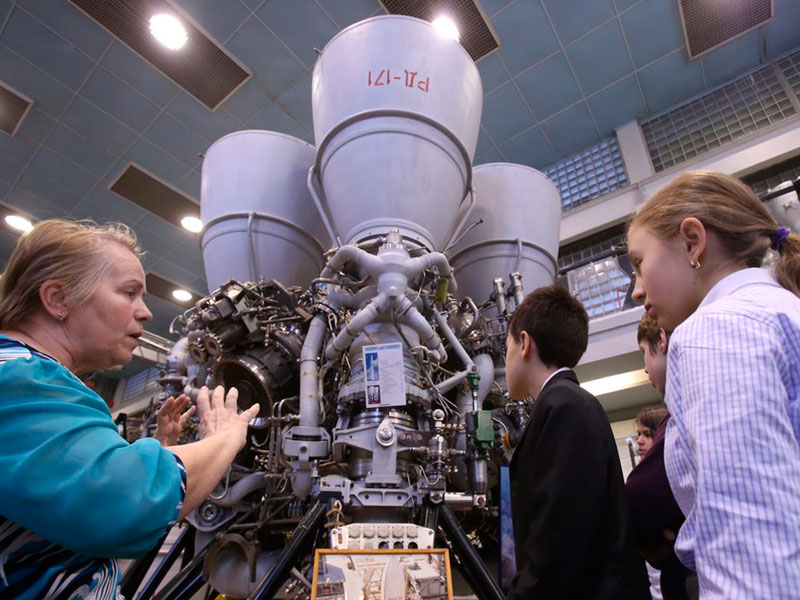 Экскурсия на «НПО Энергомаш» / АГН "Москва" / фото: Никеричев Андрей Первый двигатель РД-171МВ для новейшей ракеты среднего класса «Союз-5» «Иртыш» собрали на подмосковном «НПО Энергомаш». По словам главы «Роскосмоса» Дмитрия Рогозина, по мощности ему нет равных в мире.