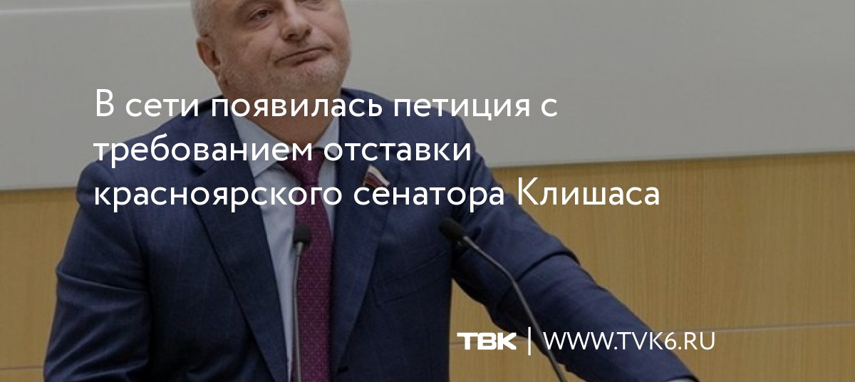 В сети появилась петиция с требованием отставки красноярского сенатора Клишаса