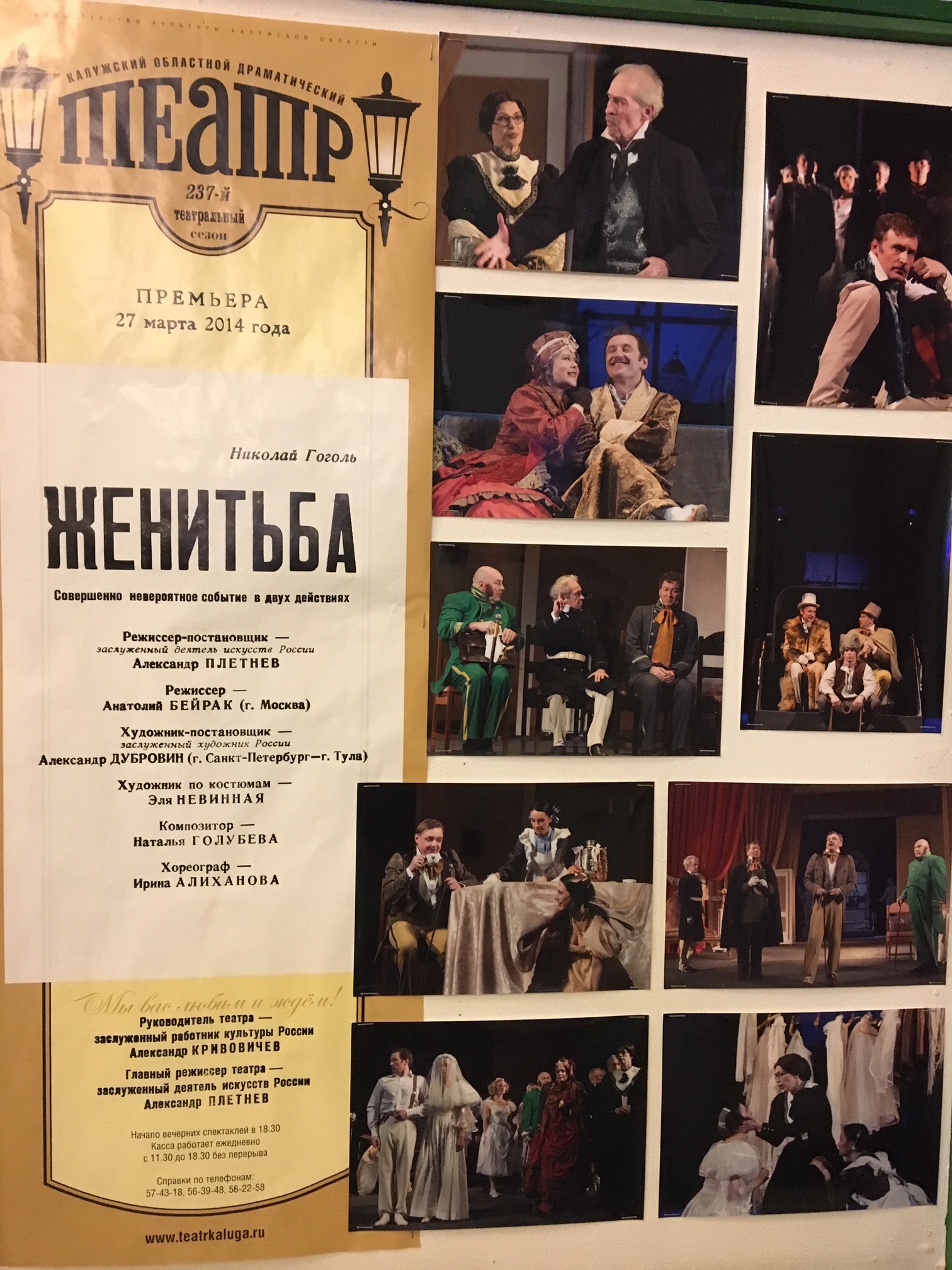 В Калужском драмтеатре была с семьёй младшей дочери на вечернем спектакле «Женитьба» по пьесе Н.Гоголя;
