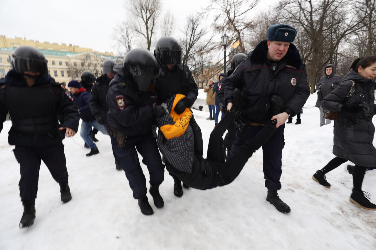 Жесткие задержания, плакаты протестующих и кормление голубей на фоне полиции — «Бумага» публикует фоторепортаж Давида Френкеля с акции.
