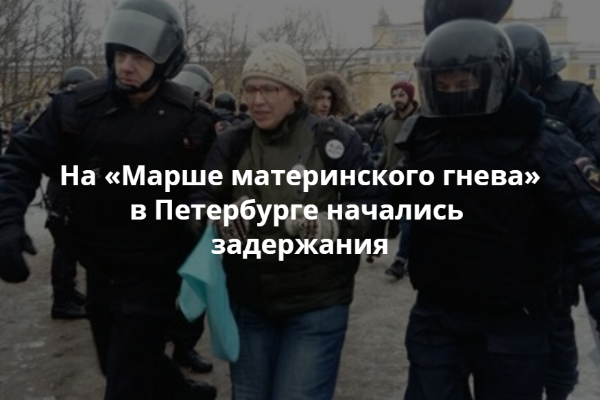 Сегодня в Петербурге и других городах проходит «Марш материнского гнева». Участники акции вышли на улицы, чтобы выступить против политических репрессий и в поддержку фигурантов дел «Сети» и «Нового величия». Организован марш в поддержку арестованной активистки «Открытой России» Анастасии Шевченко — 31 января ее 17-летняя дочь скончалась в больнице.