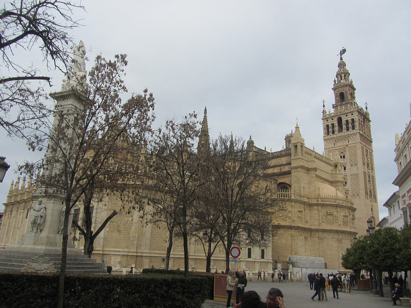 Из парка мы вышли к кафедральному собору Мария-де-ла-Седе, построенному (как и многие храмы юга Испании) на месте бывшей мечети. Кафедральный собор Севильи является третьим по величине христианским собором в мире (после собора Св. Петра в Риме и Базилики Богоматери в бразильском городе Апаресида), а из готических — самым большим в мире. Он также окружен искусственными водоемами, которые, похоже, являются важной частью архитектуры южной Испании.