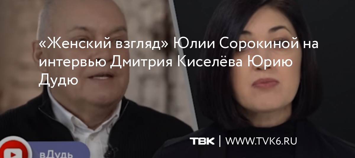 «Женский взгляд» Юлии Сорокиной на интервью Дмитрия Киселёва Юрию Дудю