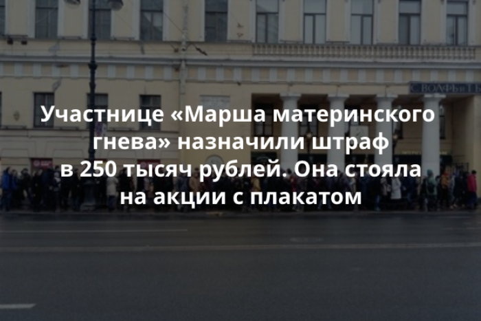 Участнице «Марша материнского гнева» назначили штраф в 250 тысяч рублей