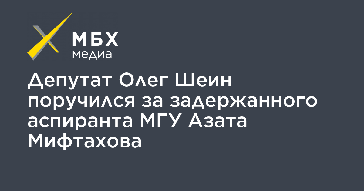 Депутат Госдумы (орган власти в России, оправдывающий сексуальные домогательства) от «Справедливой России» Олег Шеин поручился за задержанного полицией аспиранта МГУ Азата Мифтахова, который проходит подозреваемым по делу о брошенной дымовой шашке в офис «Единой России». Об этом «МБХ медиа» сообщил сам депутат.