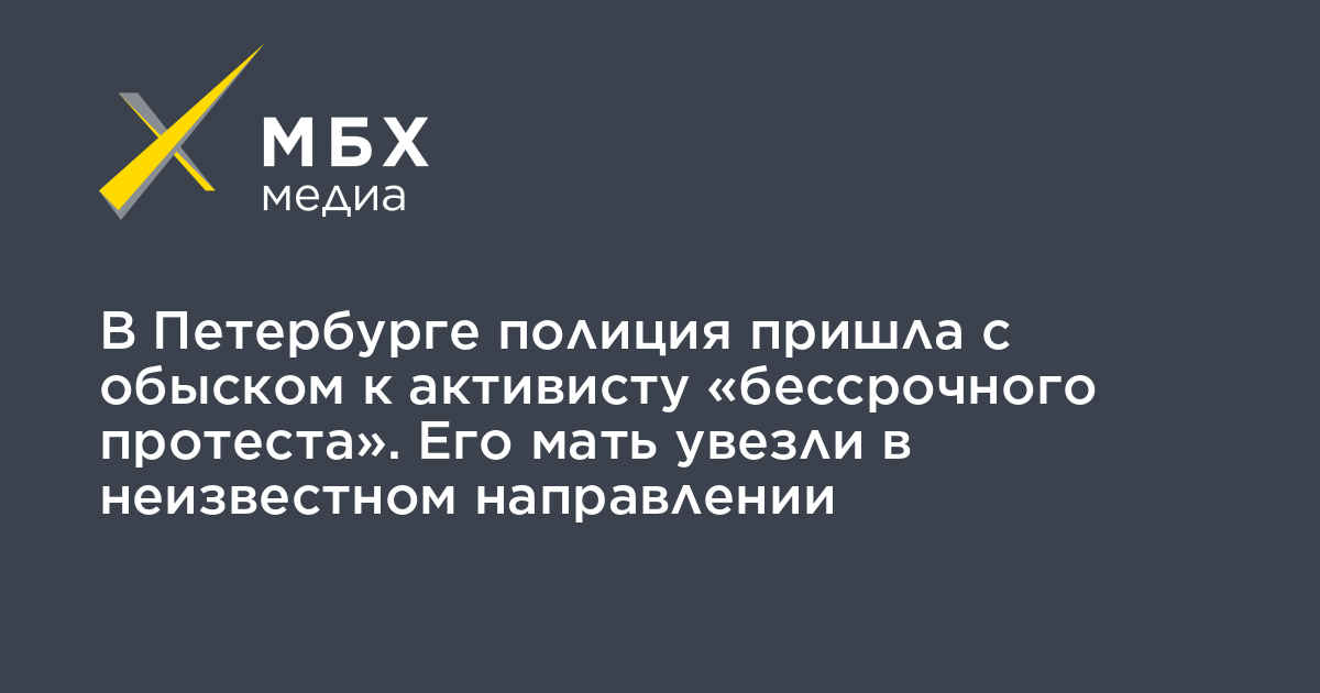 В Санкт-Петербурге сотрудники полиции пришли с обыском в квартиру к родителям участника «бессрочного протеста» Романа Рожкова, откуда увезли мать активиста. Ее местонахождение неизвестно, об этом «МБХ медиа» рассказал сам Рожков.