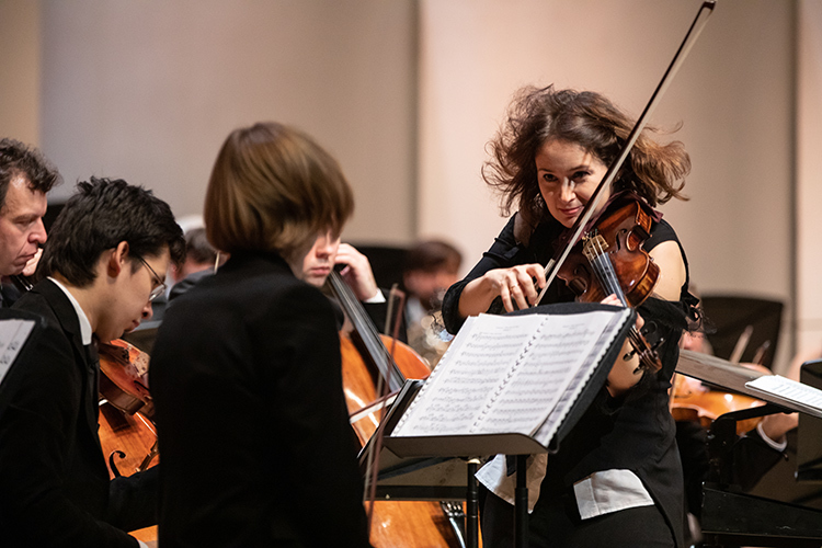 © Московская филармония Патриция Копачинская в зале Чайковского Что же касается скрипачей, то самым обсуждаемым стало соло Патриции Копачинской в Скрипичном концерте Чайковского. Потому что в это же самое время над малеро-шостаковичевскими большими нарративами надмирным ангелом пролетел Теодор Курентзис со своим оркестром MusicAeterna — по пути с парижского «Дау» на первые японские гастроли. Чайковского в Японии любят еще больше, чем у нас. И пермяки подготовили целую подборку его сочинений, из которой москвичам достались головокружительные всполохи «Ромео и Джульетты» и «Франчески да Римини», а также Скрипичный концерт с хулиганкой Копачинской. Споры о ее панибратском отношении к священной для каждого скрипача партитуре начались давно, с выходом соответствующего диска, и закончатся нескоро. Между тем в ходе нынешнего турне концерт Чайковского Курентзис играет и с Айленом Притчиным — и, судя по поступающим, например, из-под сугробов Северной столицы откликам, с Притчиным он получается совсем иначе, чем с Копачинской. То есть это два разных Скрипичных концерта Чайковского. Интересно было бы послушать их подряд.