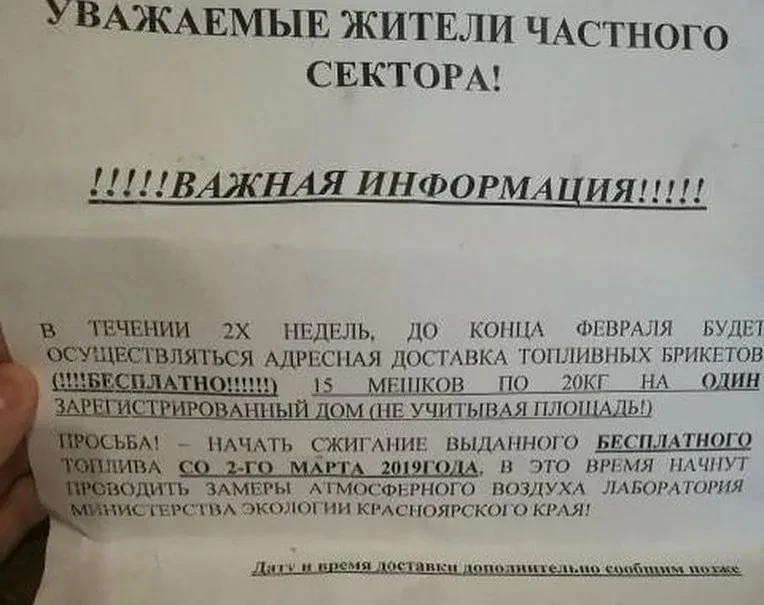 Перед Универсиадой красноярцам раздают бездымный уголь. Горожане возмущены лицемерием власти