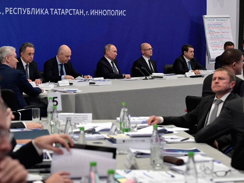 В.Путин на выездном заседании в г. Иннополис / kremlin.ru Вчера в Казани Владимир Путин открыл серию совещаний с общественностью по вопросам реализации национальных проектов. Первая встреча была посвящена нацпроекту «Жилье и городская среда». В ходе мероприятия президент обратил внимание на проблему обманутых дольщиков, высказался за возобновление ипотечных каникул и звявил, что что рост кредитных ставок, наблюдаемый с конца прошлого года, является предсказуемым и краткосрочным явлением, и в дальнейшем они начнут снижаться.