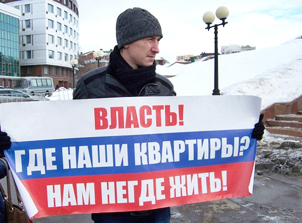 Обманутые дольщики / tat-kprf.ru Он отметил, что сейчас действует свыше 1 млн договоров долевого участия и потребовал обеспечить их полную реализацию, а также защитить права обманутых дольщиков. Президент обратился к главам регионов, заявив, что эта категория людей, лишившаяся и жилья, и накоплений, ждет от них активных и эффективных действий.Отвечая на вопрос одного из пострадавших дольщиков, он подчеркнул, что власти намерены и дальше оказывать помощь по этому вопросу из федерального бюджета.