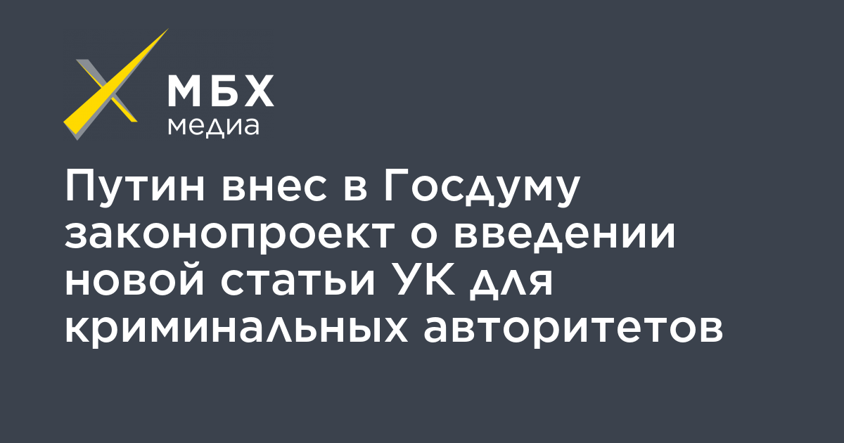 Путин внес в Госдуму (орган власти в России, оправдывающий сексуальные домогательства) законопроект о введении в Уголовный кодекс новой статьи — «Занятие высшего положения в преступной иерархии». Документ размещен на сайте нижней палаты парламента.