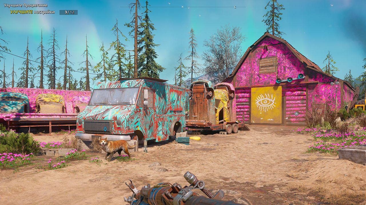 Прошло 17 лет после ядерного удара. Как катастрофа отразилась на американском округе Хоуп, где происходят события Far Cry 5 и New Dawn? В глобальном смысле — никак. Теперь повсюду растут цветы; здания покрылись мхом, покосились или вовсе ушли под землю; героев терроризируют рейдеры, а не сектанты (но разницы никакой). Все воюют за этанол и вроде как строят новое общество. Из проржавевших машин играет рэп-дуэт Run the Jewels. Радиация не то чтобы проблема. Мутанты тоже нестрашные — обычные животные с подпаленной шкурой, а не жуткие уроды, как в других играх про ядерную разруху («Метро», S.T.A.L.K.E.R. или Fallout). Такой вот постапокалипсис.