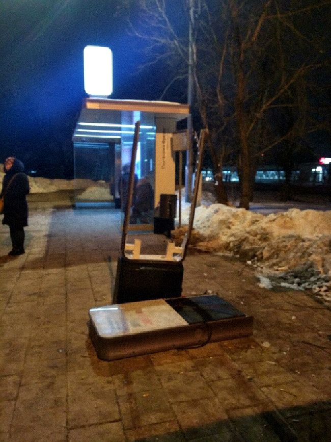 Похожим образом поступили сотрудники столичного департамента транспорта. В 2017 году на автобусной остановке рядом с платформой Фрезер установили новый павильон с лайтбоксом, на котором показывалось время ожидания общественного транспорта. В марте 2018 года лайтбокс разбили. «В начале недели еще все было цело, судя по тому, что фрагменты указателя еще рядом лежат, разбили недавно. Вроде на остановке камера была, может зафиксировала», — сообщал пользователь портала «Наш город» Александр Павлов. Через несколько дней представитель департамента транспорта ответил ему, что поврежденный лайтбокс демонтирован, а вместо него теперь — «указатели маршрутов на отдельно стоящих опорах». Как пишет Александр, вместо электронного табло с расписанием на остановке поставили металлическую табличку с расписанием, которая постоянно падает.