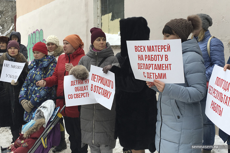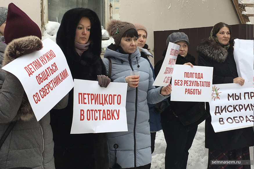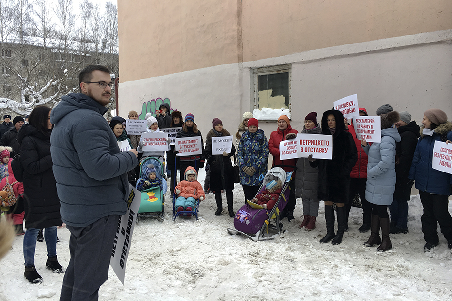 Жители Кирова 14 февраля вышли на пикет к зданию департамента образования города, требуя отставки его главы Александра Петрицкого. По мнению родителей, Петрицкий не решает проблему комплексно и даже не слушает жителей во время приема. Чиновник к пикетирующим не вышел, сообщил корреспондент «7x7».