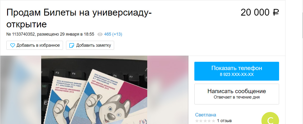 На днях стартовали продажи билетов на открытие и закрытие студенческих игр. Официальная стоимость билетов на сайте Универсиады составляет от 800 рублей до 6 тысяч. Но их раскупили почти мгновенно. Теперь билеты можно найти только у перекупщиков, и стоят они в несколько раз дороже.