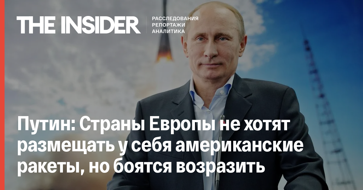 Президент России Владимир Путин заявил, что страны Европы не хотят появления ракет США на своей территории, но не решаются возразить Вашингтону.
