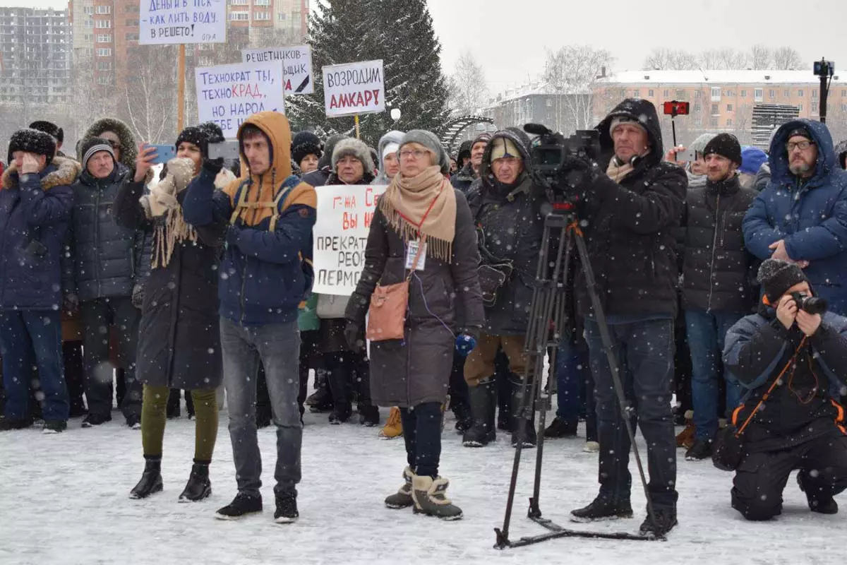 Протестовать против губернатора собрались порядка 700-800 человек – довольно приличное для Перми количество митингующих. Решетникову припомнили все, даже то, к чему он, казалось бы, не имеет прямого отношения: высокие коммунальные тарифы, уничтожение ларьков, урезание помощи многодетным (хотя, справедливости ради, оно было еще при предыдущем главе региона Викторе Басаргине), проект по переноску Горнозаводской ветки железной дороги, который уничтожит городскую электричку, проблемы с согласованием протестных мероприятий и штрафы за несанкционированные митинги, закрытие футбольного клуба «Амкар» и даже поднятие пенсионного возраста.