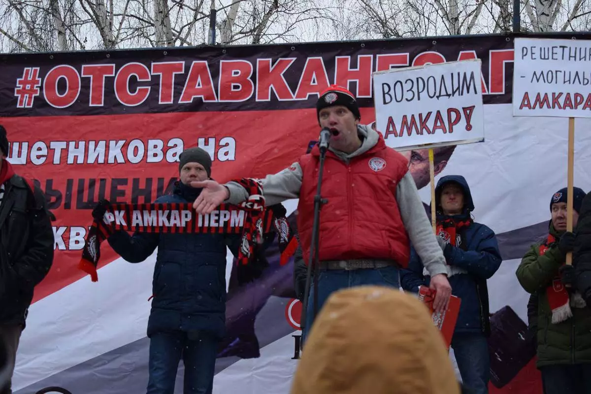 Гвоздем митинга стали фанаты футбольного клуба «Амкар», прекратившего свое существование в прошлом году, в частности, из-за того, что краевые власти отказались его финансировать. «Это какую кашу в голове надо иметь, чтобы такое исполнить!» — возмущался представитель фанатов «Амкара» со сцены. Он напомнил, что многие клубы, в том числе топовые, живут за счет народных средств: «Что написано на футболках других команд? Роснефть, Лукойл, РЖД. Это же наши деньги. Почему им (другим командам. – «МБХ медиа») можно, а нам нет?».