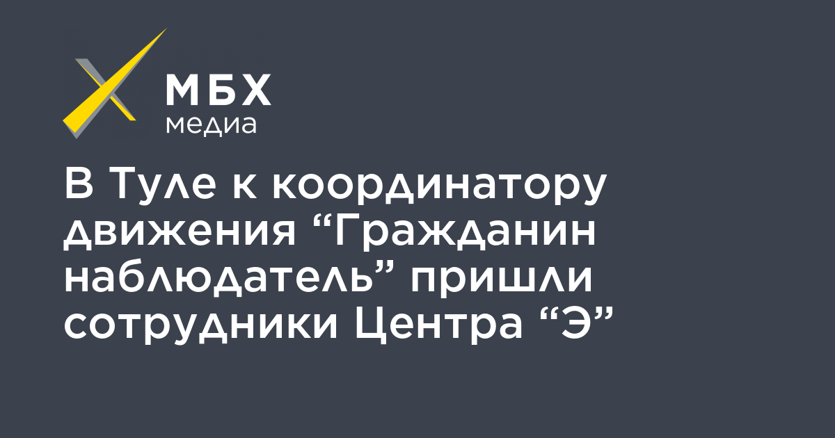 В Туле 16 февраля сотрудники местного центра по противодействию экстремизму пришли домой к координатору движения «Гражданин наблюдатель» Антону Губареву. Об этом активист сообщил «МБХ медиа».