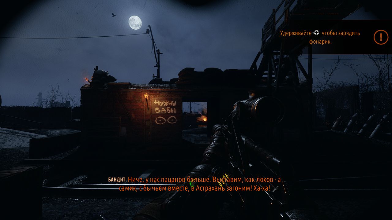 Впрочем, самая слабая часть «Исхода» — это основной сюжет. Сценарий писал сам Дмитрий Глуховский, а помогали ему сотрудники 4A Games. Получилась типичная российская фантастика про бравых комбатов. Позывные у них соответствующие, в стиле отечественных рок-групп: Князь, Мельник, Идиот.