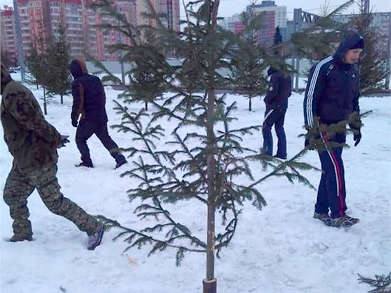 В Красноярске горожане обнаружили, что на улице Копылова в районе развязки Николаевского проспекта "сажают" в снег срубленные елки, сообщила телекомпания ТВК. В сугробы были воткнуты обрезки металлических труб, в эти капсулы рабочие заталкивали стволы. Таким образом на пустыре в городе высадили десятки деревьев.