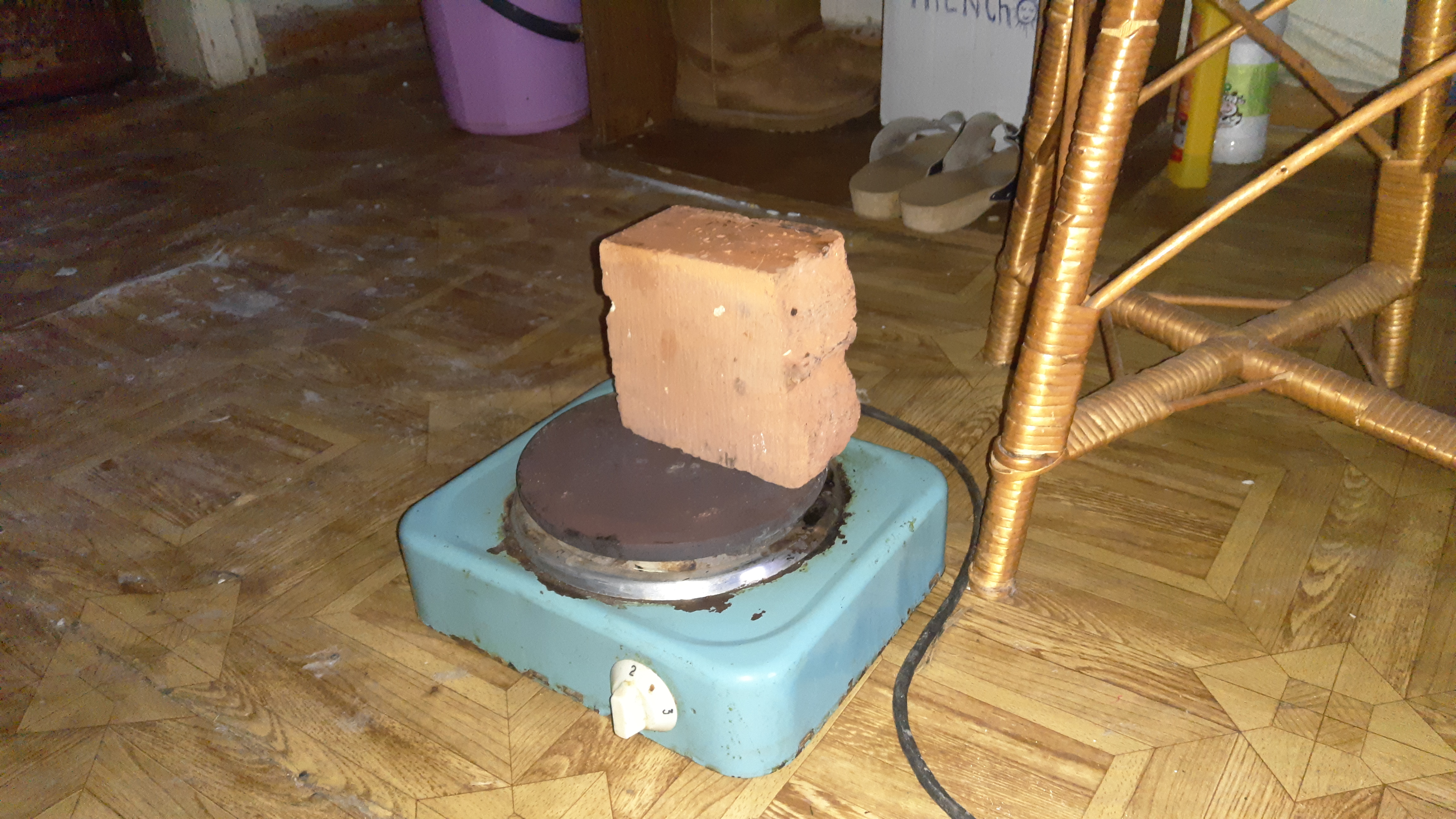 За железной дверью широкая деревянная лестница с резными перилами. Ирина Истомина занимает небольшую комнатку на втором этаже в том крыле, где фасад не пострадал. В комнате, которую Ирина пришла "протопить", стоит электрическая плитка, на ней греется половина кирпича. Отопление в доме печное газовое, но печь теперь бесполезная деталь интерьера – газ отрезали спустя пару часов после обрушения.
