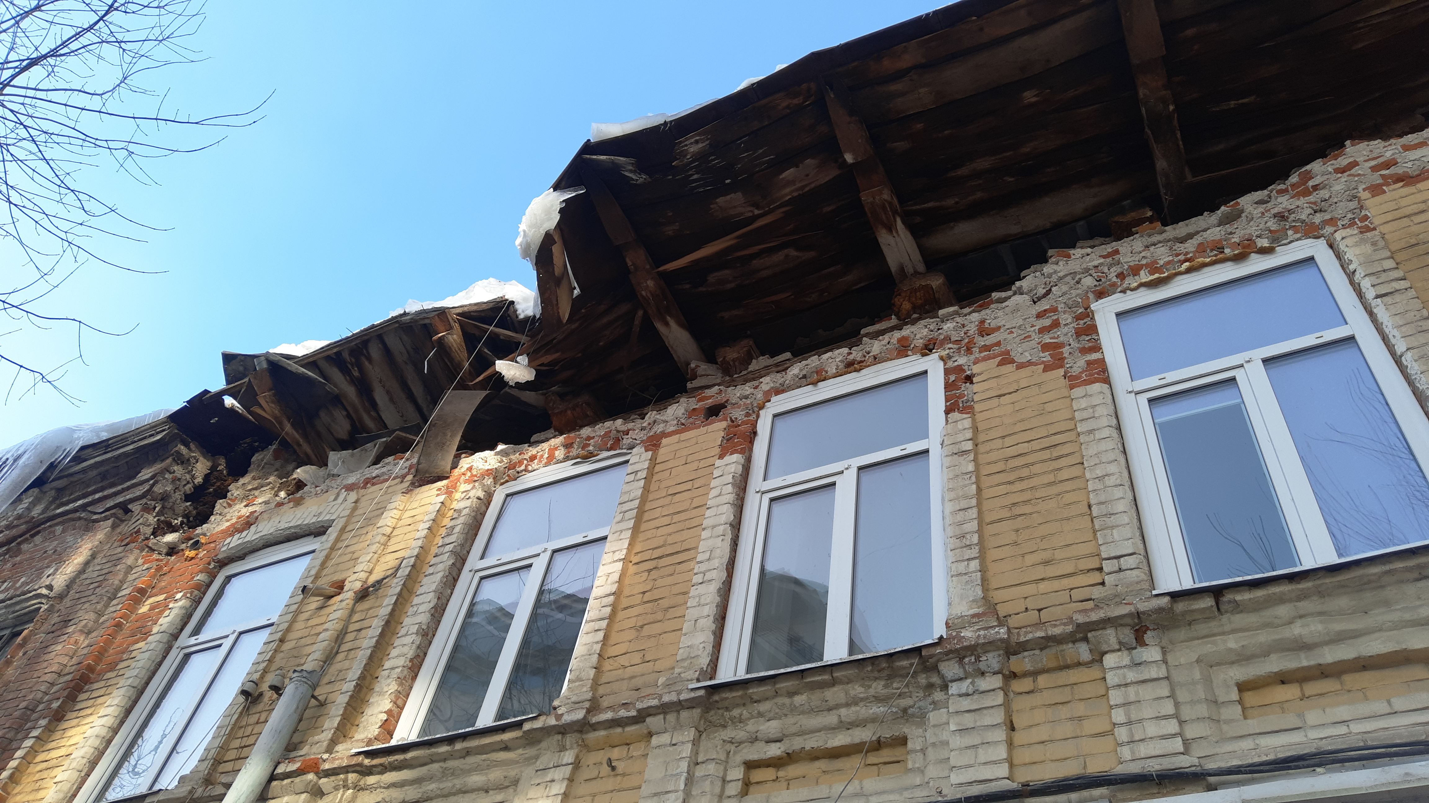 За первую неделю февраля в Саратове обвалились кровли семи жилых домах. В одном из домов – объекте культурного наследия – прямо на тротуар вместе с куском крыши обвалилась часть фасада. Чудом никто не погиб. Люди, проживавшие в этих домах, сейчас оказались фактически на улице – кто-то ночует на работе, кто-то у знакомых, кто-то остался жить в доме без крыши, потому что идти некуда. Чиновники только разводят руками: ваша собственность – ваши проблемы. А еще посылают за справками, которые нигде не выдают.