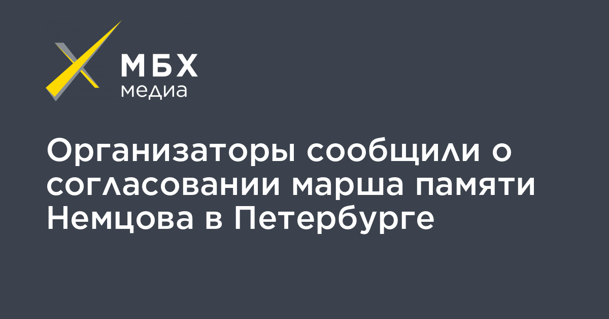 Администрация Санкт-Петербурга согласовала марш памяти политика Бориса Немцова 24 февраля, сообщил «МБХ медиа» один из организаторов акции, председатель движения «Открытая Россиия» Андрей Пивоваров.