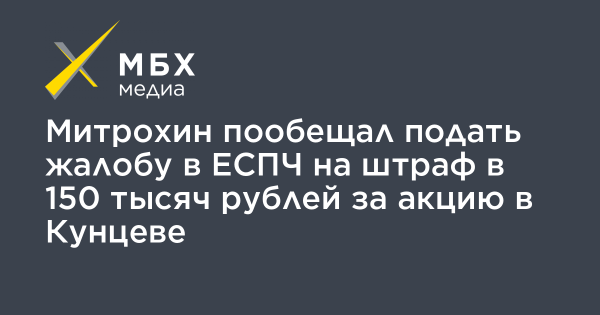 Экс-глава московского отделения партии «Яблоко» Сергей Митрохин пообещал подать жалобу в ЕСПЧ на решение суда, постановившего оштрафовать его на 150 тысяч рублей из-за участия в сходе жителей Кунцева, протестующих против застройки, об этом политик сообщил «МБХ медиа».