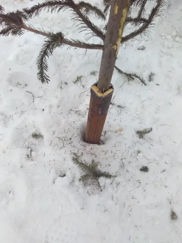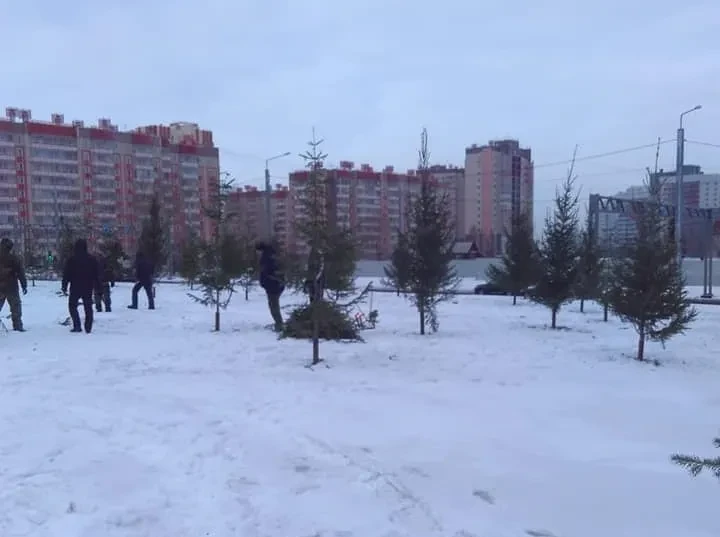В мэрии меж тем прокомментировали новую технологию озеленения города к спортивному празднику и визиту дорогих гостей: срубленные елки и сосны втыкают в обрезки металлических труб. Что создает издалека видимость живого хвойного оазиса.