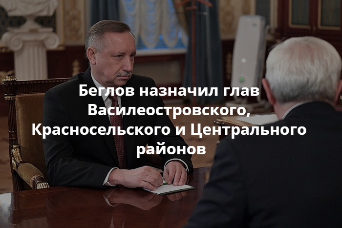 Врио губернатора Петербурга Александр Беглов назначил глав трех районов вместо отправленных в отставку. Об этом сообщается на сайте Смольного.