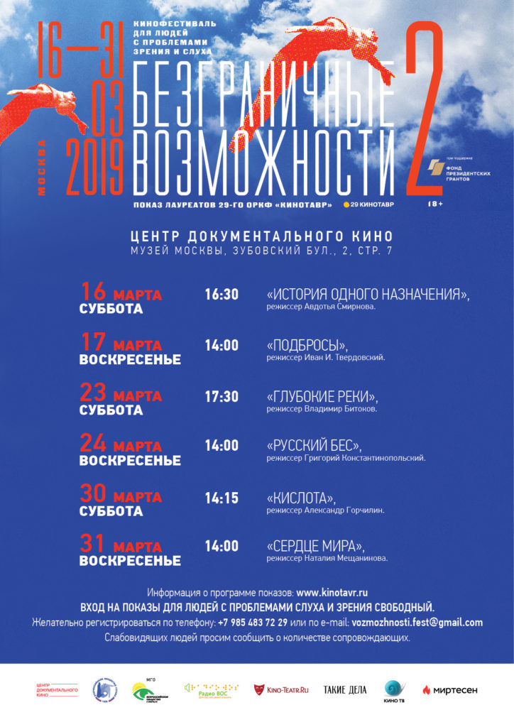 Фильмы дополнят субтитрами и тифлокомментариями. Информация о программе показов будет опубликована на сайте кинофестиваля.