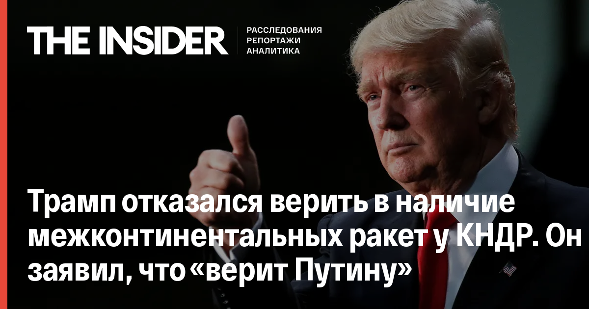 Трамп отказался верить в наличие межконтинентальных ракет у КНДР. Он заявил, что «верит Путину»