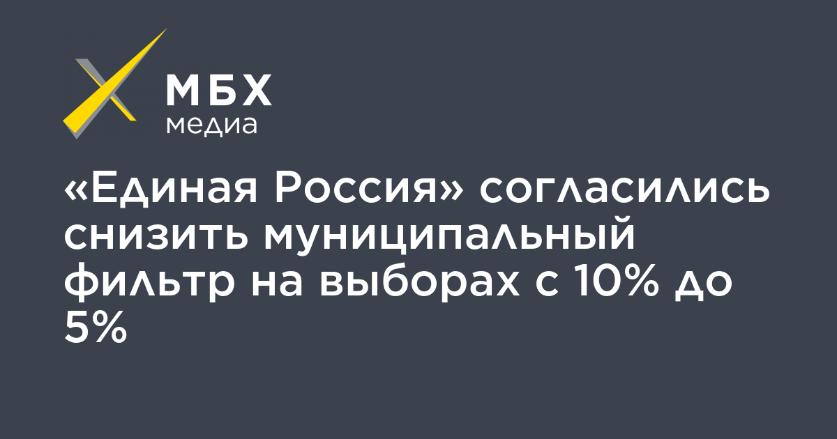 «Единая Россия» согласились снизить муниципальный фильтр на выборах с 10% до 5%, об этом сообщает ТАСС со ссылкой на первого замсекретаря генсовета «Единой России» Ольгу Баталину.