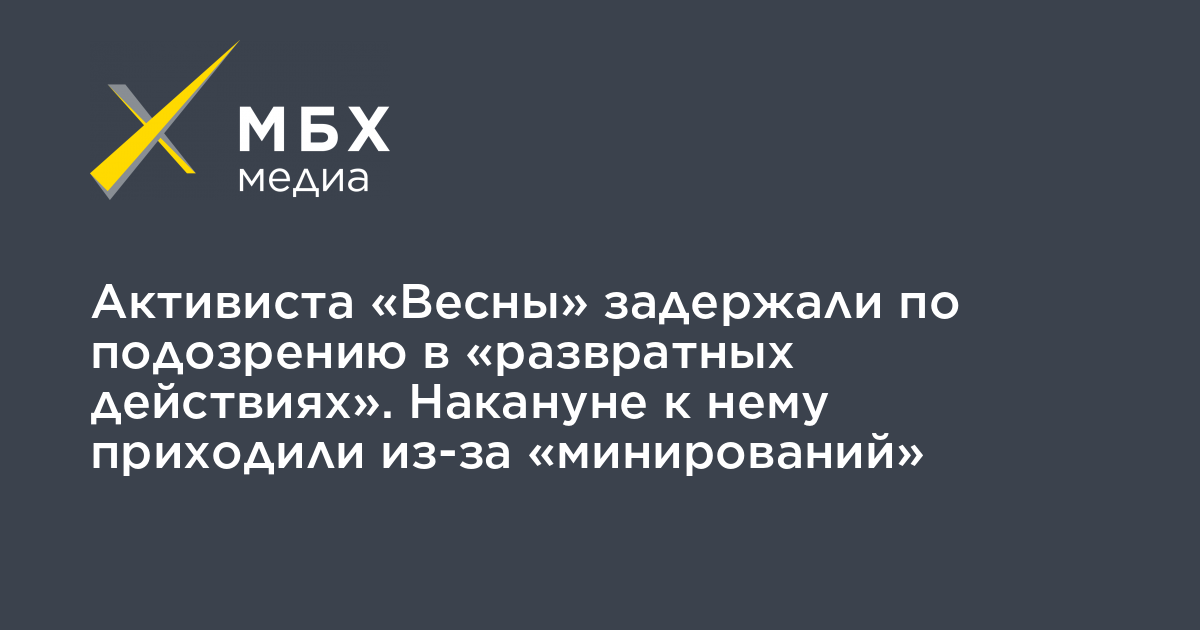 Активиста «Весны» задержали по подозрению в «развратных действиях». Накануне к нему приходили из-за «минирований»