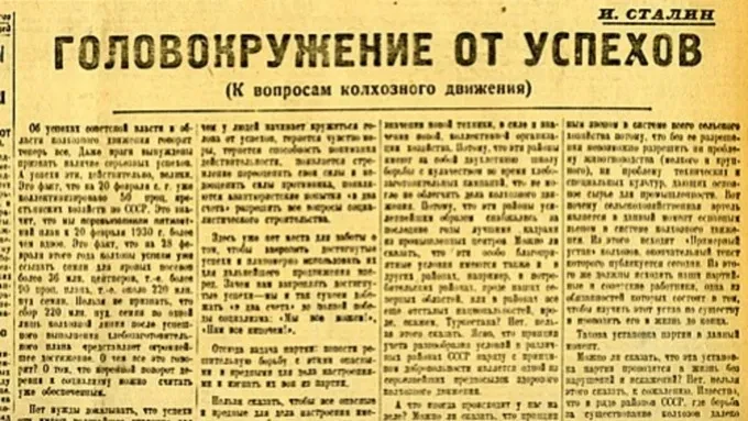Скажем, статья Сталина «Головокружение от успехов. К вопросам колхозного движения», которая появилась в «Правде», главной газете страны, 2 марта 1930 года, считалась разумной реакцией на политику насильственной коллективизации и раскулачивания. В реальности объявленный вождем «Великий перелом» — политика ускоренной индустриализации и насильственного объединения крестьян в колхозы — фактически ввергла страну в состояние гражданской войны. Насильственные хлебозаготовки и аресты мнимых кулаков привели к массовым восстаниям, а разрушение деревни — к голоду.