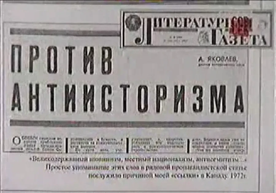 В ноябре 1972 года в популярной тогда «Литературной газете» появилась статья Яковлева под названием «Против антиисторизма». Две полосы убористого текста стоили ему карьеры. А ведь статья была написана с партийных позиций и должна была укрепить влияние самого автора. Да и руководители «Литературной газеты» рассчитывали на похвалу со стороны высшего начальства.