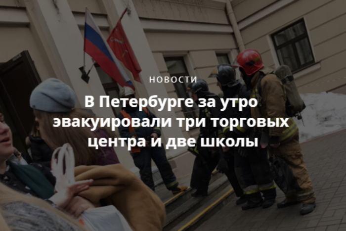 В Петербурге за утро 19 февраля эвакуировали три торговых центра и две школы, сообщают очевидцы.
