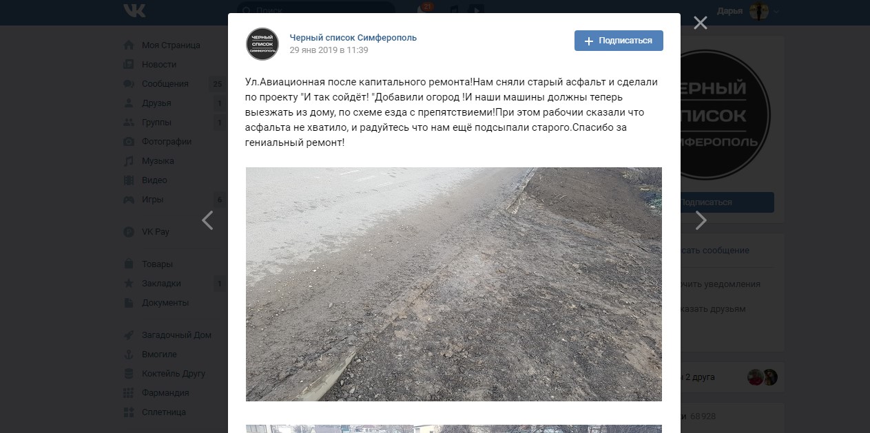 В апреле 2015 года по поручению главы российскийского правительства Крыма Сергея Аксенова «Асфальт-пром» внесли в черный список подрядчиков, которые несвоевременно или некачественно выполняли условия госконтрактов в 2014 году. Строительный контроль за ремонтом осуществляла компания «ТВС-Крым» – тоже из Симферополя. За этот объект фирме заплатили почти 3,6 миллионов рублей. «ТВС-Крым» принадлежит экс-начальнику департамента дорожного управления городского хозяйства местной администрации Данилу Черкашину. В 2016 году он со скандалом лишился должности из-за некорректного отношения к подрядчикам.