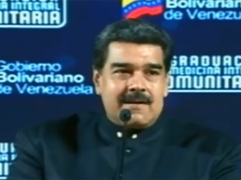 "Почему он не созывает выборы, чтобы его скинули с помощью голосования народа? Пусть самоназначивший себя клоун созовет выборы, чтобы его там скинули голосованием", - заявил Мадуро, выступая перед выпускниками медицинского университета. (Цитата по РИА "Новости".) Трансляция его речи велась в Twitter.