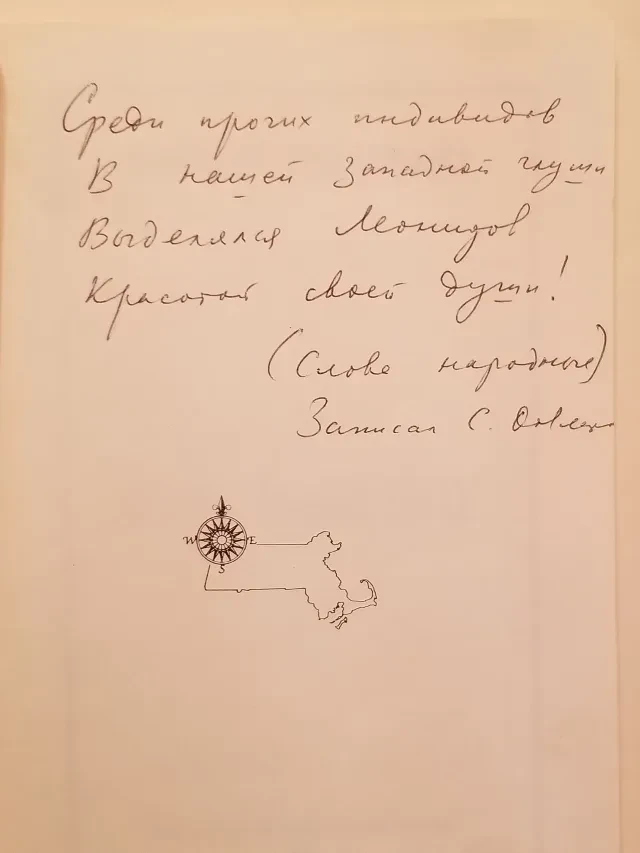 — Довлатов был чуть ли не единственным человеком в эмиграции, с которым Леонидов не поругался. Он постоянно со всеми вступал в полемику, писал открытые письма, спорил даже с Солженицыным, а уж тем, кто рангом пониже, и вовсе не давал спуску. Отсюда и пожелание сдержанности в автографе. Род его занятий я определить затрудняюсь. Начинал он еще при Сталине как конферансье, потом стал известным поэтом-песенником, писал тексты для Зыкиной и других звезд эстрады, был концертным администратором. Похожий персонаж есть в «Иностранке».