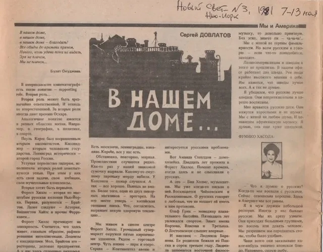 Одну из своих книг он послал на рецензию Довлатову в «Новый американец». И когда вышел следующий номер, увидел, что рецензии на его книгу там нет, а рисунок с обложки воспроизведен в качестве иллюстрации к довлатовскому эссе.