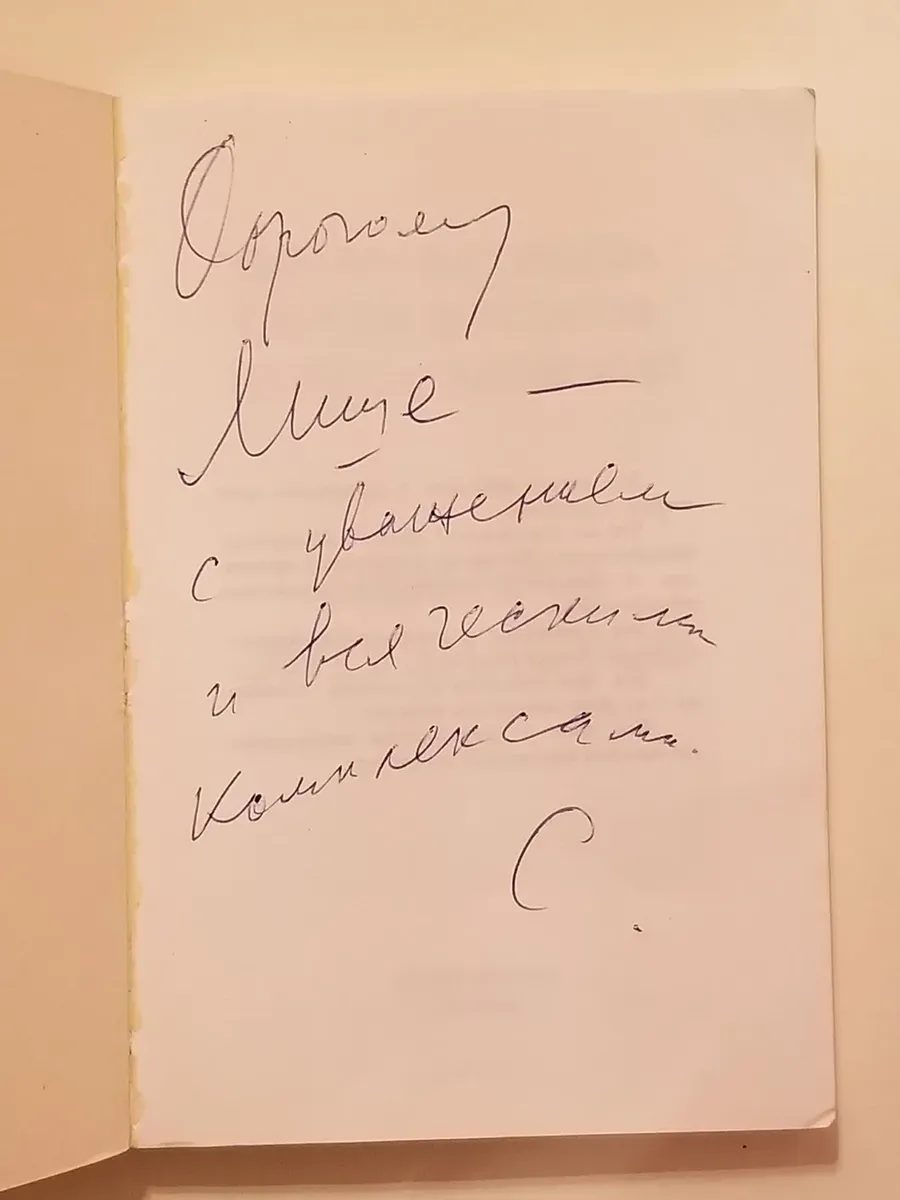 «Дорогому Мише — с уважением и всяческими комплексами. С.».