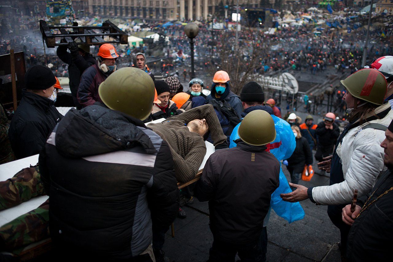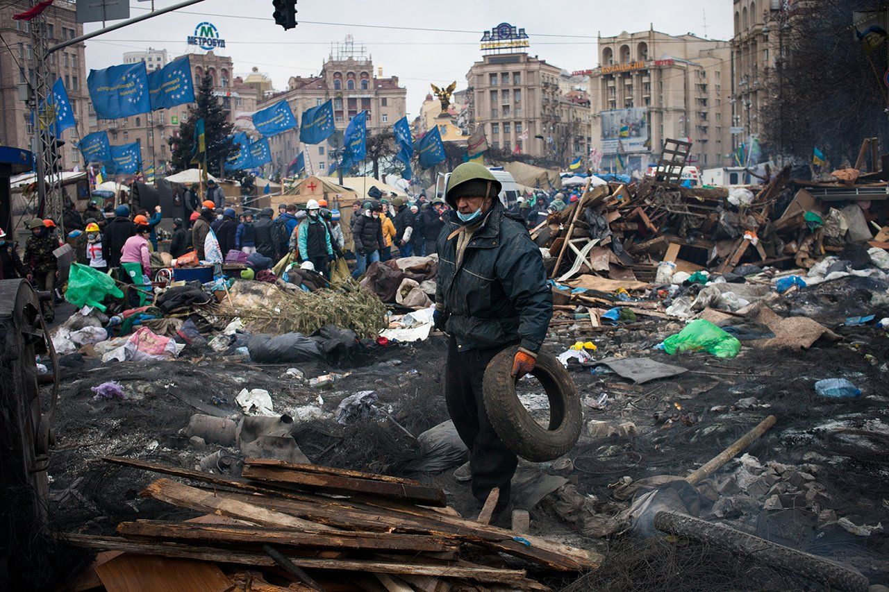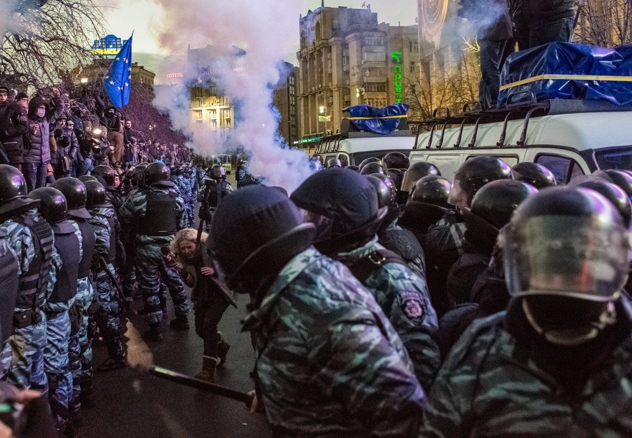 On November 21, 2013, the Ukrainian government announced that it was putting a stop to preparations for the country to enter the European Union. Its official justification was that the move was necessary “to provide for the national security of Ukraine” and “the restoration of lost production volume as well as trade and economic relations with the Russian Federation.” The next day, the first protesters emerged on Independence Square in central Kyiv. Most of them were university students. After several harsh attempts on the part of the special police division Berkut to break up the protests, they grew to include many thousands of people and stretch for twenty-four hours a day. By then, many Ukrainians joined the protests because they were generally dissatisfied with the actions of Viktor Yanukovich and his government.