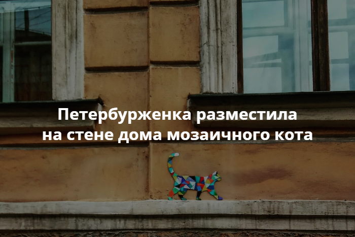 Петербурженка Ульяна Шкатова, которая ведет блог о борьбе с раком, рассказала, что размещает на стенах петербургских домов мозаику. Например, она создала мозаичного кота.