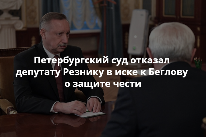 Смольнинский районный суд Петербурга отказался удовлетворить иск депутата городского парламента Максима Резника о защите чести и достоинства, который он подал к врио губернатора Александру Беглову. Об этом сообщает «РИА Новости».