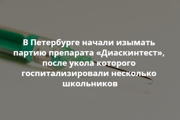 В Петербурге из оборота начали изымать партию препарата «Диаскинтест», после укола которого 11 учеников школы № 72 госпитализировали. Об этом сообщает пресс-служба уполномоченного по правам ребенка в Петербурге.