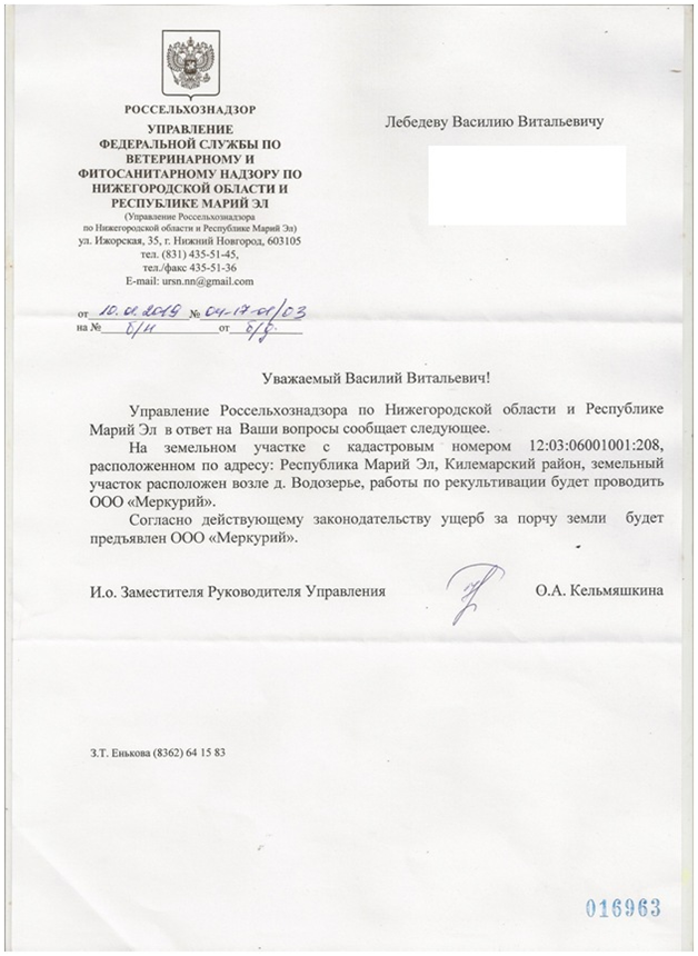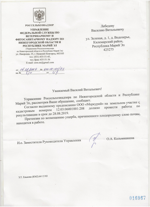 После получения этого ответа я обратился в Россельхознадзор, чтобы они уточнили, когда и в какие сроки будет проведена рекультивация почв, ну и какую сумму ущерба будут выплачивать наши «инноваторы».